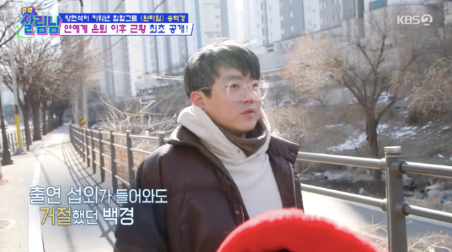 송백경은 2025년 3월 KBS2 ‘살림하는 남자들2’(이하 ‘살림남’)의 새 코너 ‘추억 살림남’을 통해 오랜만에 대중 앞에 섰습니다. 방송에서 그는 연예계를 떠난 이유에 대해 솔직하게 밝혔는데요.
